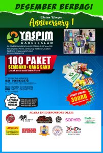Untuk memeriahkan MIlad Yaspim yang ke-1, YASPIM akan mengadakan kegiatan pembagian donasi sebanyak 100 paket sembako plus uang saku dengan nilai sebesar Rp300.000,-. Buat teman teman yang ingin ikut berdonasi atau menjadi sponsor pada kegiatan ini bisa menghubungi kami.