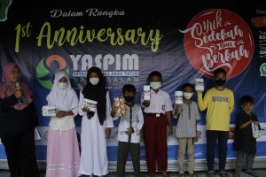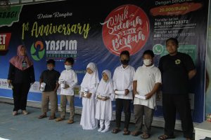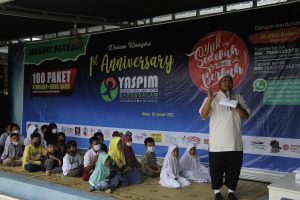 Minggu 9 Januari 2022 YASPIM (Yayasan Peduli Anak Yatim) Darussalam gelar syukuran dalam rangka ulang tahunnya yang ke 1. Dalam acara tersebut YASPIM membagikan 100 paket santunan anak yatim/piatu dhuafa yang berupa sembako dan uang saku.